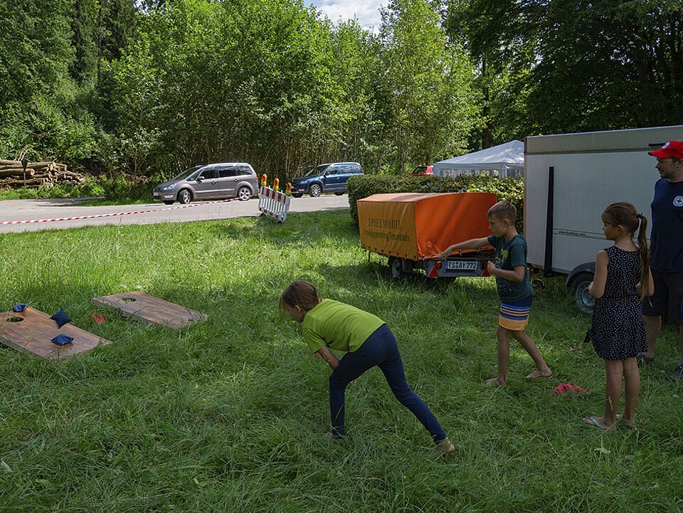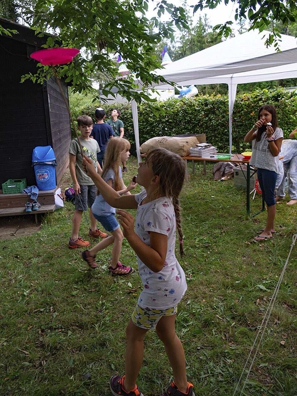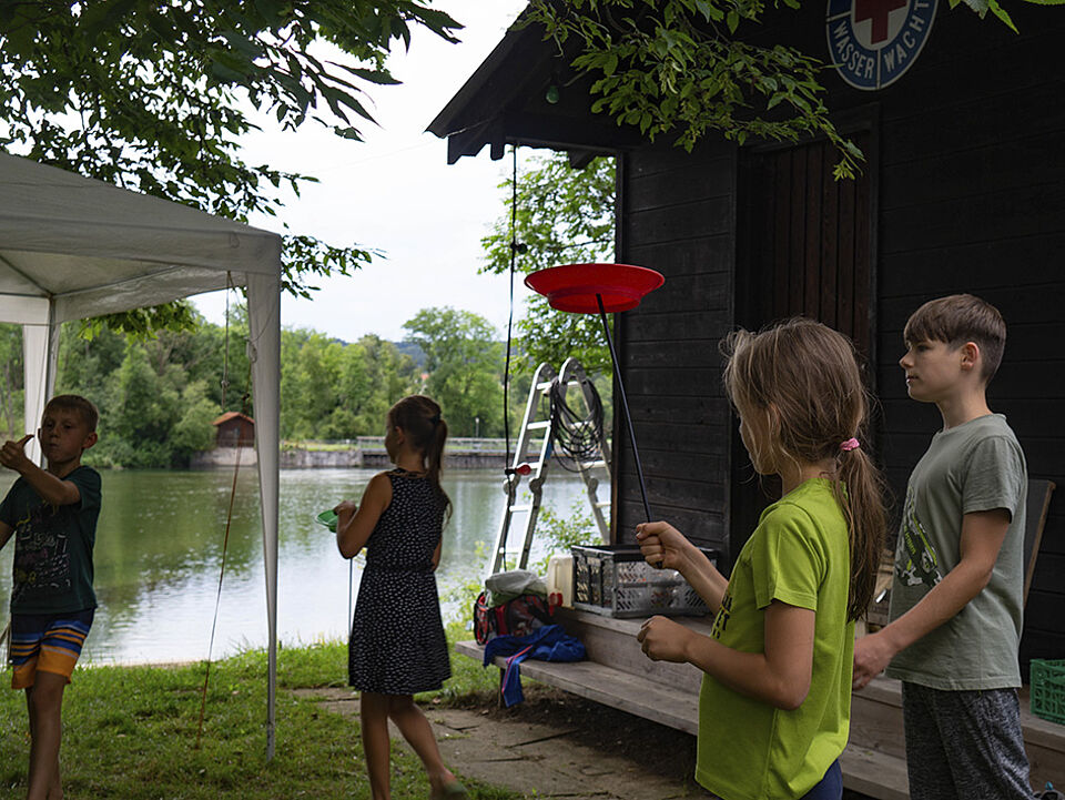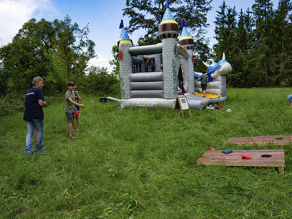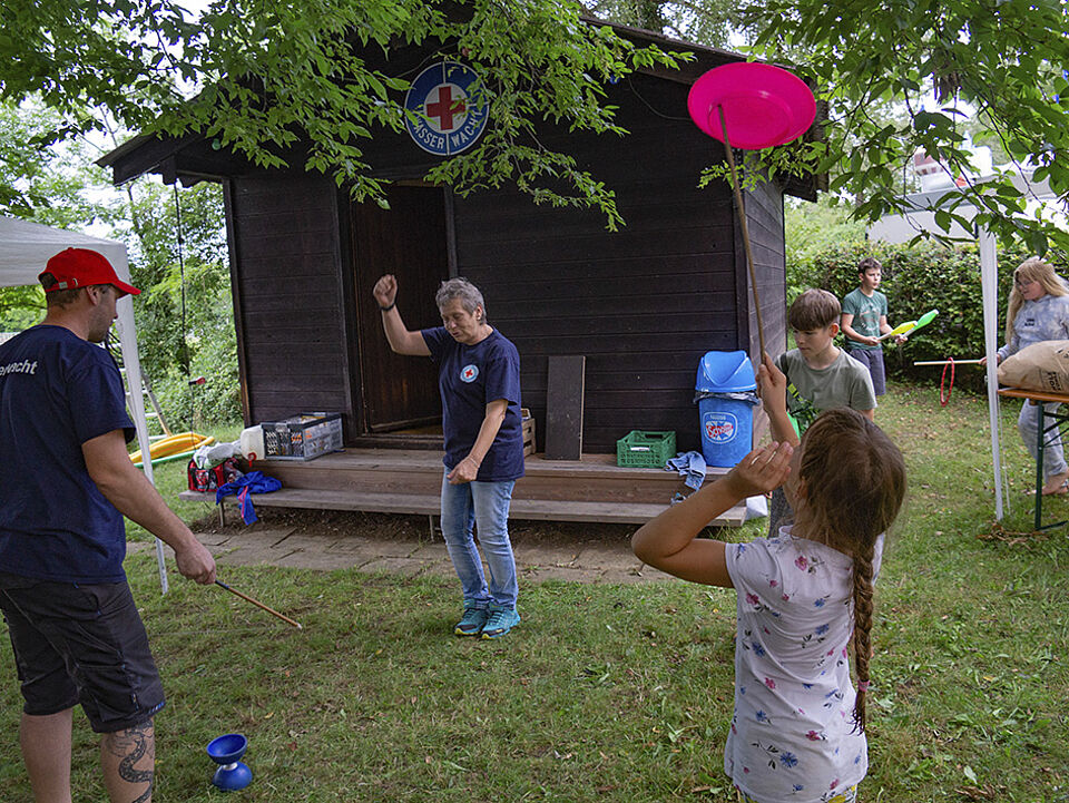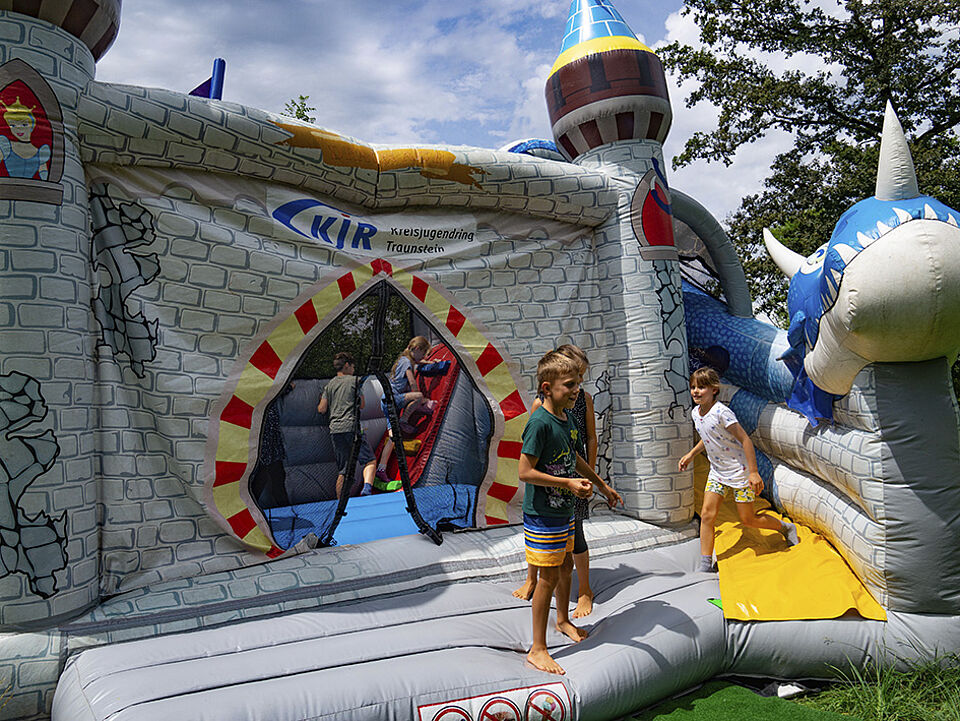 Ende Juli fand zum ersten Mal seit vielen Jahren das Sommerfest der Wasserwacht Tacherting wieder mit einer bestehenden Jugend statt. Da das Fest jedoch bereits am ersten Sommerferien-Samstag veranstaltet wurde, waren leider nur 8 der 19 Kinder anwesend. Dies tat dem Ganzen jedoch keinen Abbruch, denn es war viel geboten. Vom Kreisjugendring Traunstein konnte eine Hüpfburg, ein Wurf-Spiel sowie eine Jonglierkiste kostengünstig ausgeliehen werden. Und viele Eltern brachten Kuchen und Muffins mit und auch für das leibliche Wohl am Abend war reichlich gesorgt.