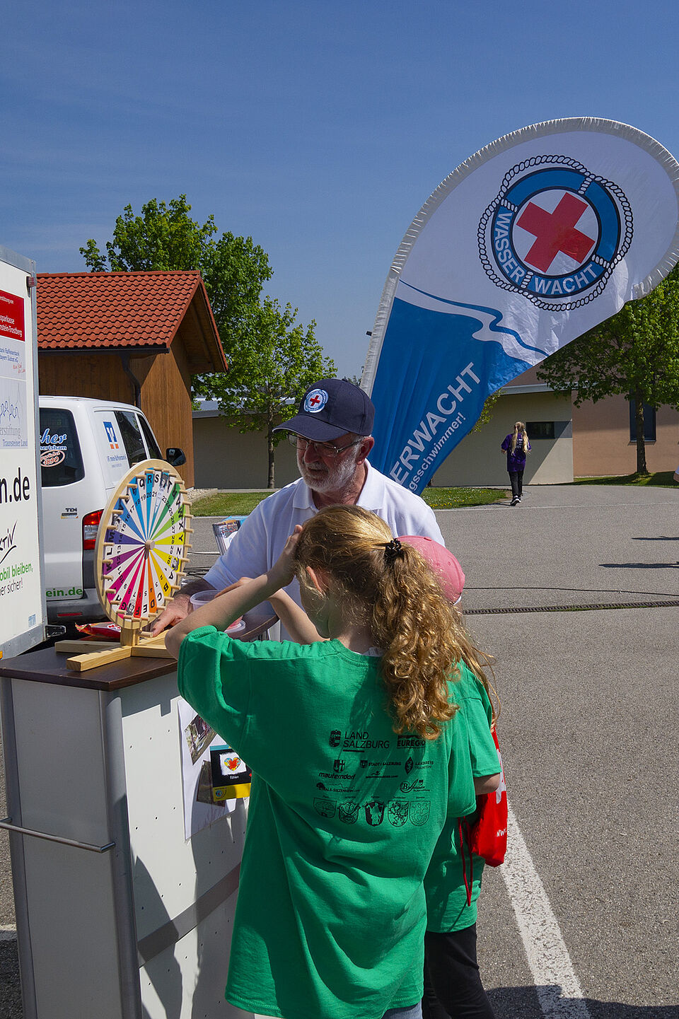 Auch wir beteiligten uns natürlich an der Safety Tour. Unser Stand war immer stark besucht. Neben Spielen und kleinen Preisen konnten sich die Kinder und Lehrer über die Aufgaben der Wasserwacht informieren.