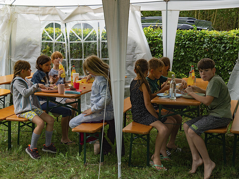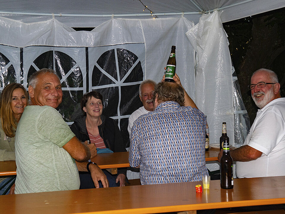 Zum Abschluss für die Jugend wurde dann noch gemeinsam mit den Aktiven gegrillt, bevor sie müde, aber glücklich von ihren Eltern wieder abgeholt wurden. Das Wetter hatte sich wieder etwas beruhigt und die Biertischgarnituren unter den Pavillons füllten sich anschließend mit einigen aktiven und ehemaligen Wasserwachtlern. Bis spät abends wurde gefachsimpelt, geratscht und gelacht. Und auch Bürgermeister Werner Disterer kam kurz vorbei. Er hatte auch in diesem Jahr wieder das Grillfleisch als Dank für den Dienst im Hallenbad gesponsert. Wie jedes Jahr wurde das Grundstück für das Fest von Johann Maier aus Mankham zur Verfügung gestellt. Der Strom, der u.a. für die Hüpfburg benötigt wurde, kam wieder von Tom Weschta. Ein herzliches Dankeschön an alle, die das diesjährige Sommerfest unterstützten.