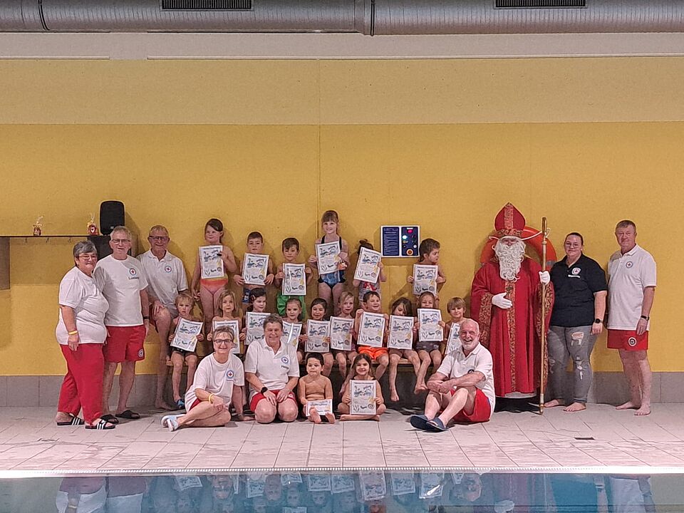Die Wasserwacht Tacherting hielt auch diesen Herbst wieder einen Schwimmkurs ab. Es beteiligten sich 22 Kinder, davon erreichten 10 Kinder das Seepferdchen und 6 Kinder das Bobbyabzeichen. Jedes Kind erhielt am letzten Kurstag eine Teilnehmerurkunde die sie mit einem kl. Geschenk vom Nikolaus überreicht bekamen.