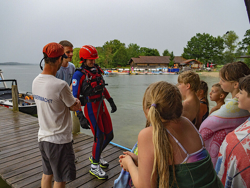 Bereits Mitte Juli ging es für 13 Tachertinger Jung-Wasserwachtler mit ihren Betreuern nach Waging zur ortsansässigen Wasserwacht. Dort gab es die Jugend Gelegenheit, bei leichtem Regen aber angenehmen Temperaturen die verschiedenen Wasser- und Rettungsfahrzeuge der Wasserwacht Waging kennenzulernen und selbst einmal ins Boot zu steigen.