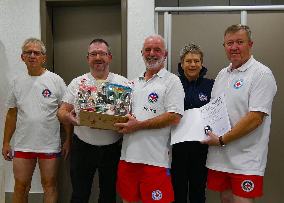 Je einen Präsentkorb für besondere Verdienste erhielten Erich Strasser sowie Josef Kaltenhauser. Beide waren in den letzten Jahrzehnten bei unzähligen Schwimmkursen beteiligt.