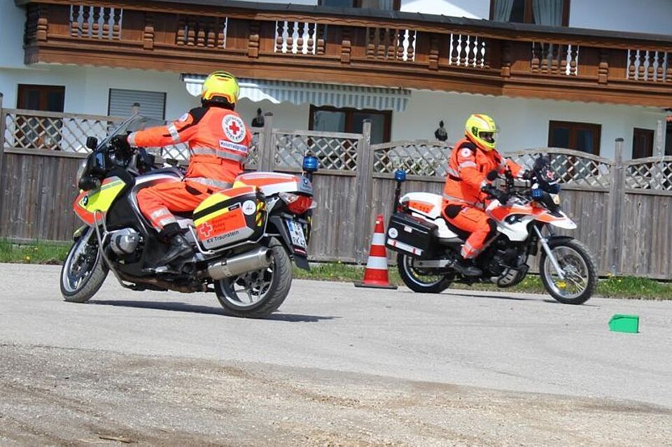 Ab 18. Mai ist die Motorradstaffel des BRK Traunstein mit ihren Dienstmotorrädern unter anderem auf der A 8 zwischen Neukirchen/Teisendorf und Felden im Streifen-Einsatz. Die Motorräder sind im Stau schneller vor Ort als die großen vierrädrigen Einsatzfahrzeuge und können so noch schneller Erste Hilfe bei Notfällen oder Verkehrsunfällen leisten. Geplant sind die Einsätze der ehrenamtlichen Helfer während der Ferienzeiten an Samstagen, Sonntagen sowie an gesetzlichen Feiertagen.