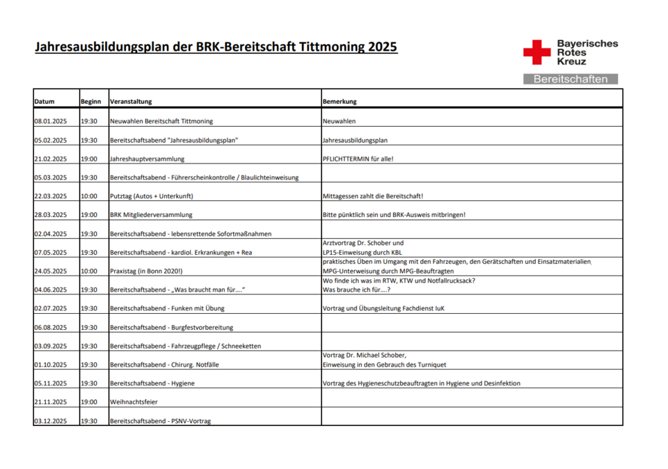 Wenn ihr bei der BRK Bereitschaft Tittmoning mitwirken möchtet, schaut einfach mal spontan und unverbindlich bei unserem Bereitschaftsabend vorbei oder meldet euch per Mail.